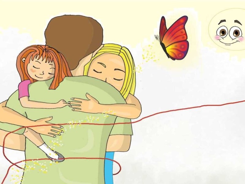 Con su familia para siempre Cuando por fin se reunieron Valentina y sus padres para siempre se fundieron en un tierno abrazo que casi aplasta a la pobre mariposa, que no quería perderse el momento.